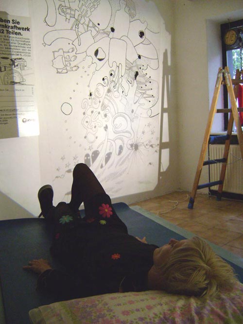 . . . or bine machfeld dreaming while elffriede projecting/drawing an inkdrawing by maki+elffriede . . .