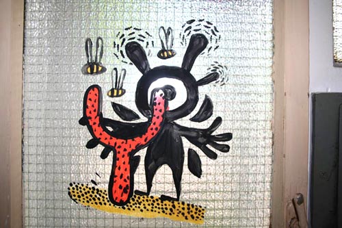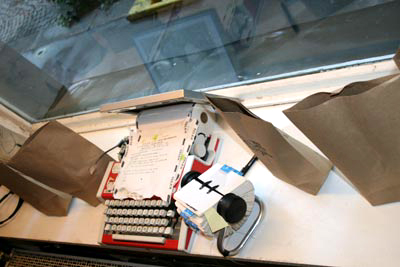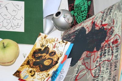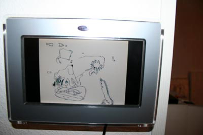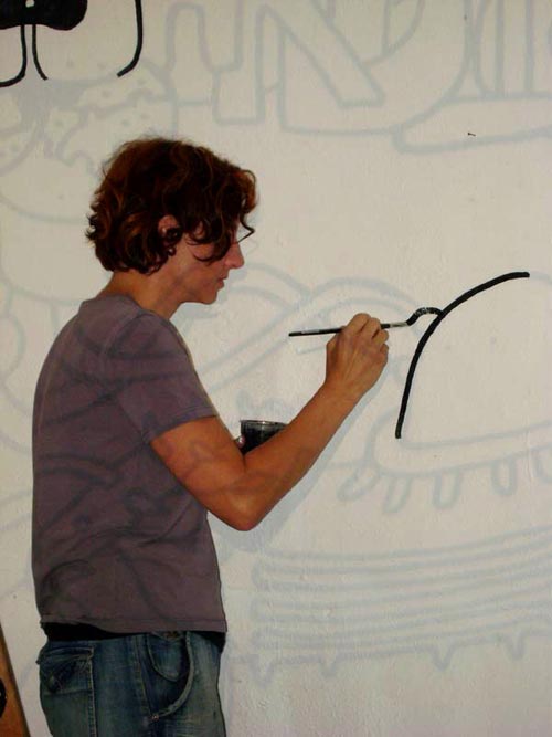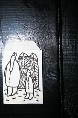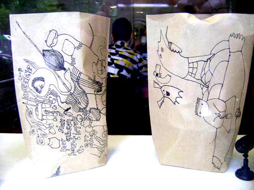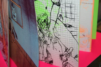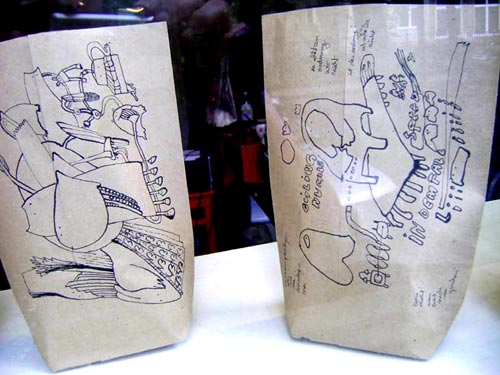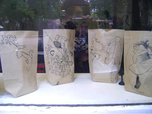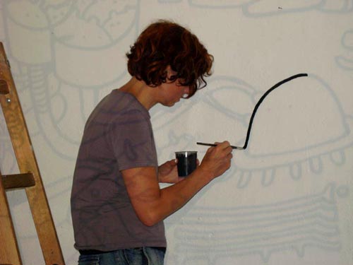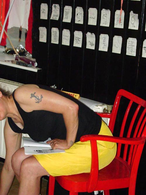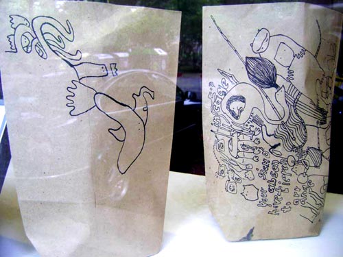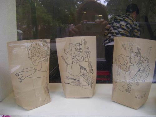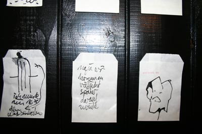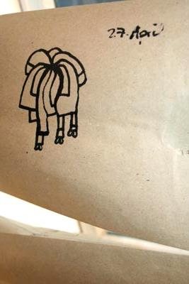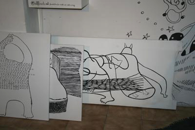 elffriede-bag-drawings (in the bacck: joyce from extrapool visiting). . .