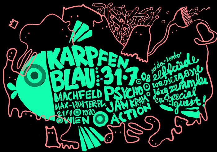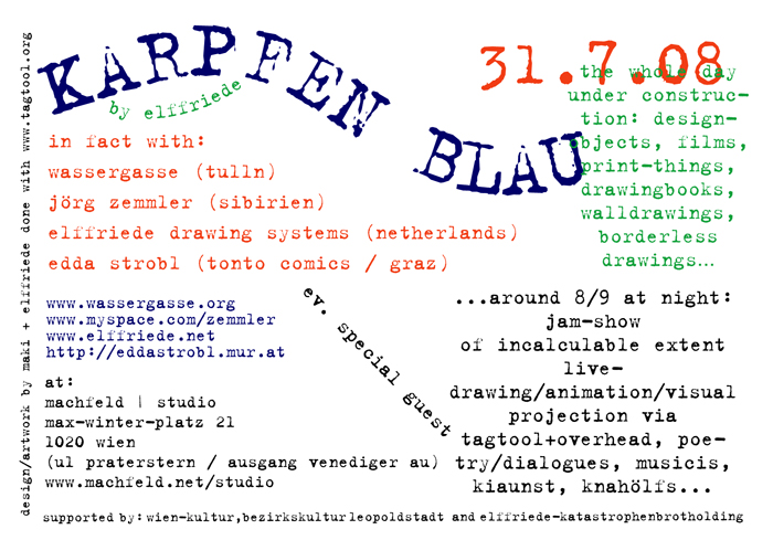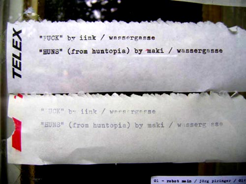 ...in fact: edda from stobl, zemmler from sibiria and huns from huntopia (by maki/wassergasse) + f...(by iink/wassergasse) + gnu (wassergasse) are visiting... the machfelds are also there... oh my good