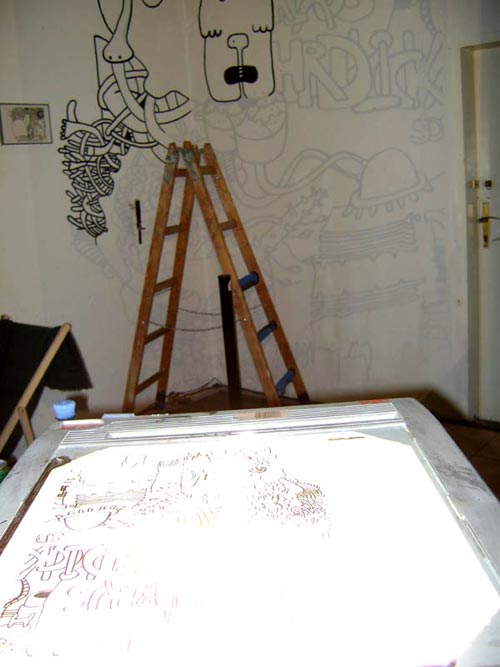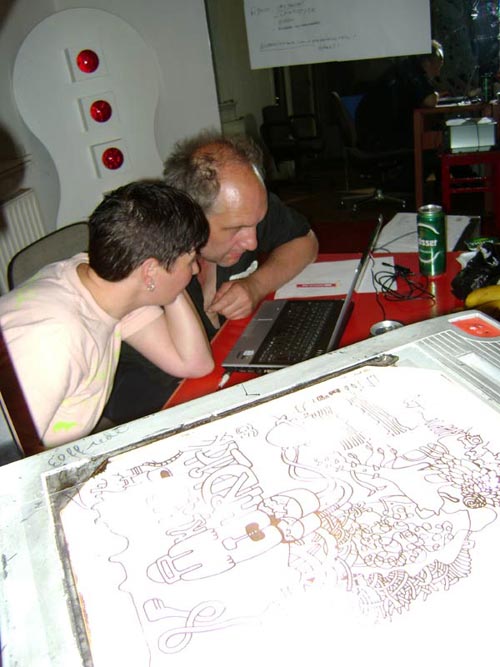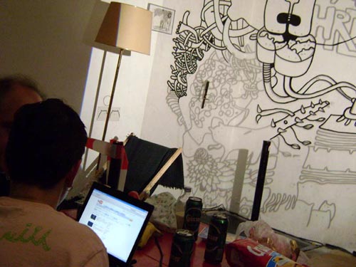 projecting/drawing while jan-dirk + joyce from extrapool/nl visiting and switching the music . . .