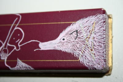elffriede-scratches with the ink-pen . . . leaving traces